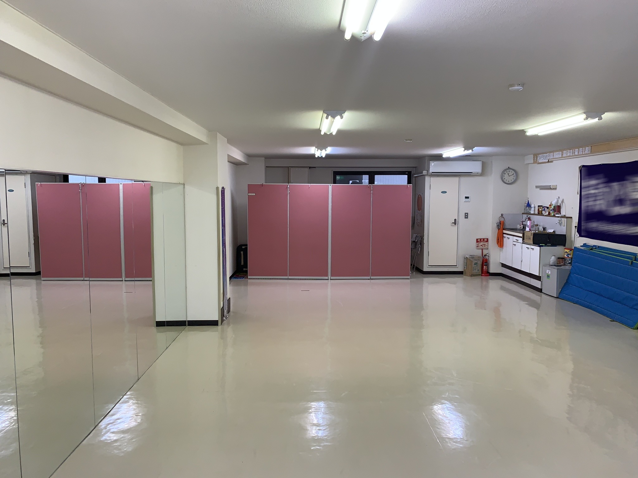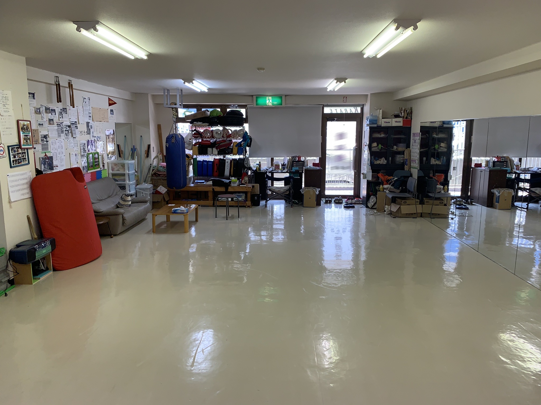 片面鏡張りの空手道場です。スチール、ドラマ、バラエティなどにお使いいただけます。人気撮影エリア至近(ギャラリー屋外の写真は別途申請)。控室でのご利用も可能。時間曜日に関してはお問い合わせください。